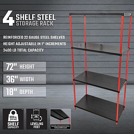 - Heavy-duty: 600lb Per Shelf Capacity; 2400lb Total Capacity