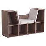 The KidKraft Bookcase with Reading Nook is popular with parents because of its clever design, sturdy construction and aesthetic appeal. Combining a cushioned seating area with bookshelves gives you two spaces in one furniture piece. Kids can store books, toys, blankets and more in the six shelves, then curl up on the three-sided angled middle section to read or rest. The two tall shelves on the sides are perfect for accommodating taller picture books. Place a lamp on the top sides for cozy light. Three gray cushions stay securely onto the base with self-adhesive strips. Available in trend-right colors to match your home's décor, the Bookcase with Reading Nook will help keep any kids room or playroom organized and neat.