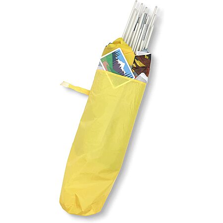 There's plenty of room to set up house and let imaginations grow in this roomy and charming cozy cottage play tent! The large, sturdy fabric playhouse stands nearly four feet tall and three feet long, giving plenty of space for multiple kids to play. The cottage exterior is covered with vibrant, full-color artwork, bringing to life a vegetable garden, tire swing, doghouse, and more. This unique play space is packed with playful details, such as a front door with a flap that rolls up, window shutters that open and close, a working mail slot, mesh fabric in the roof peak and windows, and durable floor material. It even comes with a reusable postcard to drop in the mail slot! The play tent is easy to assemble and easy to pack away in the handy take-along storage tote. Kids three and older will make this "home base" for imaginative play for years to come!