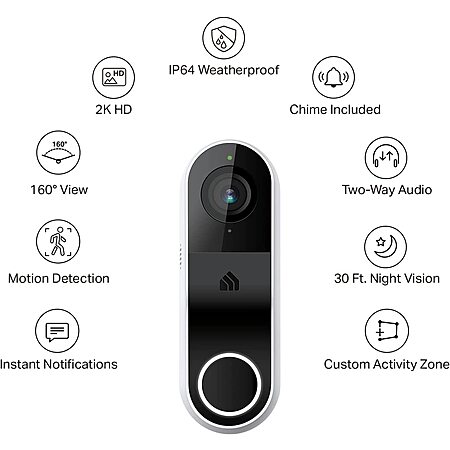 TP-Link Kasa 2K Video Doorbell Camera Hardwired w/ Chime