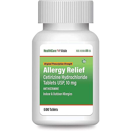Amazon[amazon.com] has 500-Ct HealthCareAisle All day Allergy Relief Cetirizine Hydrochloride Antihistamine Tablets (10mg) for $13.77. Shipping is free w/ Prime or on orders $25+.