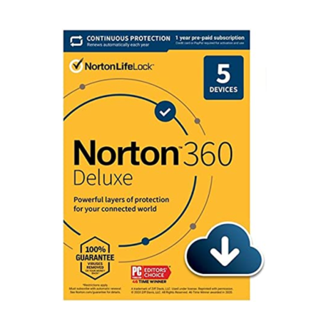 Norton 360 Deluxe 2022 (5 Devices, Auto-Renewal) + $10 Amazon Gift Card