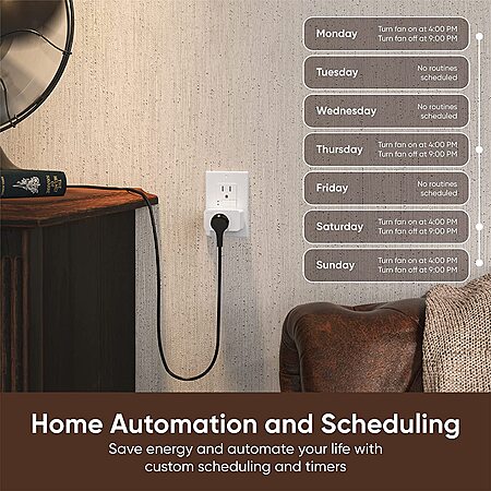 • Schedule appliances and lights to turn on/off at specific times of the day