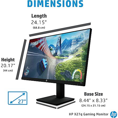 27β HP X27q 2560x1440 QHD 165Hz IPS FreeSync Gaming Monitor