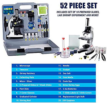 AmScope Kids' 120X-1200X Beginner Microscope STEM Kit $23.80, 25-Count AmScope PS25 Prepared Microscope Slide Set $11.19 + Free Shipping