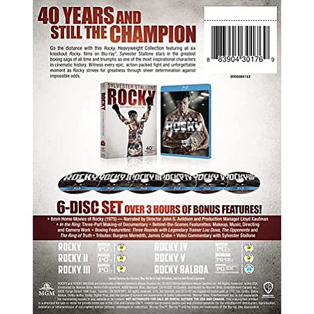 • Featuring all six knockout Rocky films including the first film with a stunning new master. This collection contains over three hours of bonus features including a new featurette "8mm Home Movies of Rocky" narrated by Director John Avildsen.