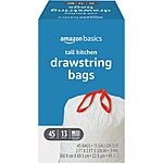 45-Count 13-Gallon Amazon Basics Tall Kitchen Drawstring Trash Bags