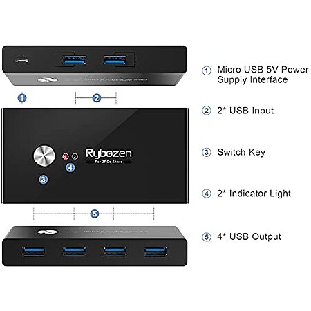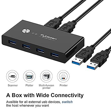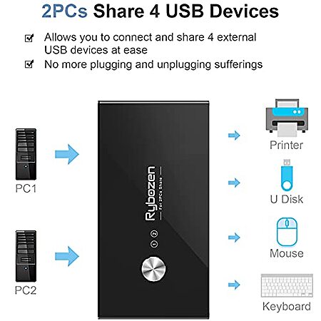 Rybozen 2-PC 4-Port USB 3.0 Switch Hub (Share 4 USB Devices Between 2 PCs)