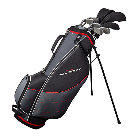 When you need the all-in-one-convenience of a complete package set, and want high-quality components designed to enhance your game, Wilson Tour Velocity delivers both. This complete men's golf set includes everything you need to get out on the course and start enjoying the game of golf. You get a driver, a fairway wood, a hybrid, five irons, a putter and a standing carry bag. You even get three head covers to protect your new clubs. With features specifically designed to help new players build good habits and have more fun, Tour Velocity is truly the total package. It's never been easier to jump into the game of golf!