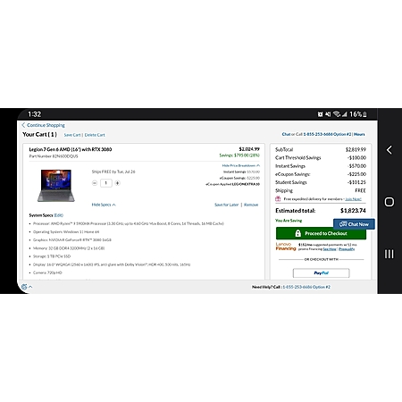 5. Your price will be $1783.24 + you will receive $160 in Lenovo Rewards to spend later on qualifying items at Lenovo.com.