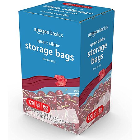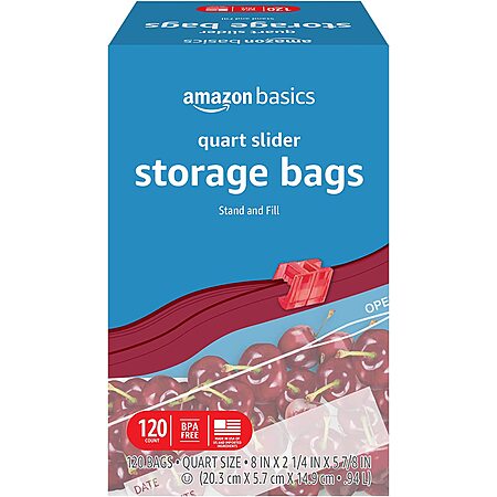 120-Count Amazon Basics Quart Slider Food Storage Bags