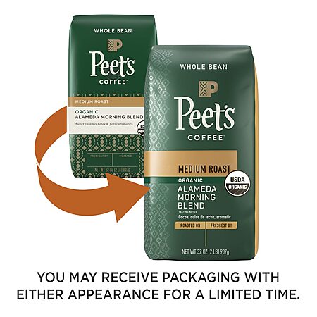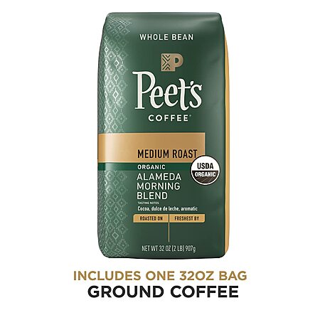 Amazon [amazon.com] has 32-Oz Peet's Coffee Medium Roast Whole Bean Coffee (Organic Alameda Morning Blend) for $24.99 - 5% off when you checkout via subscribe & save - 20% off when you clip the coupon on the product page = $18.74. Shipping is free w/ Prime or on orders $25+. - S&S is no longer available, now $19.99/ Temp OOS but can still be ordered