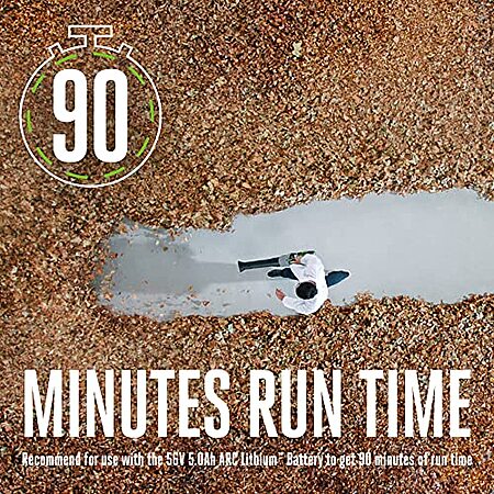 • Over 90 minutes of run time: 15 minutes on Turbo; 200 minutes on low with 5.0Ah Battery (sold separately)
