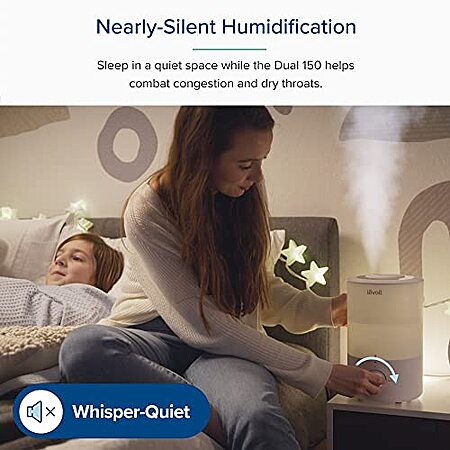 GOOD SLEEP MATTERS: No more loud humming or gurgling. Enjoy a quiet night's rest while the Dual 150 humidifies your bedroom at a whisper-quiet 28dB level, helping you sleep without a stuffy nose or dry throat.