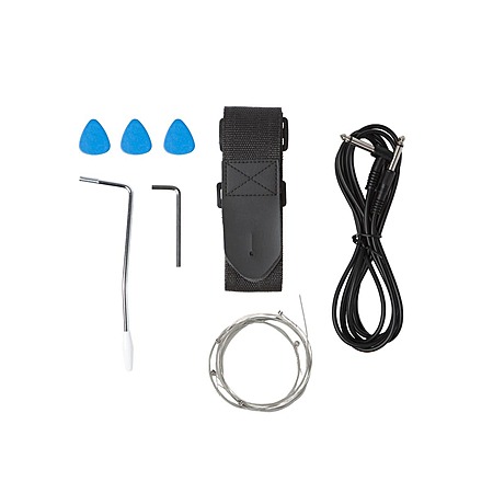 When received it, I immediately noticed a 1/4? gouge on the c shape neck about 6th fret. Would have thought QC would have caught that one. After a couple hours of tuning and set up I actually got a reasonable sound. I think with upgrades it can be a fun guitar. Oh, and throw the amp away, guitar isn?t shielded and there is a whole lot of humming when gain is on. 3rd knob down tone button has almost zero effect. Get VOX headphone amp with DJ headphones. Inexpensive and get some great sounds. Also the strings are garbage. I stretched and stretched and it?s still losing tune. What can I say? Got a just ok guitar for $129. Forget the kit, buy a cheap guitar and upgrade it. Sorry for the bad news!