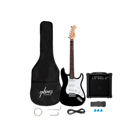 Model: Indio by Monoprice Cali Complete Full-size Electric Guitar Package with 10W Amp, Strap, and Extra Strings