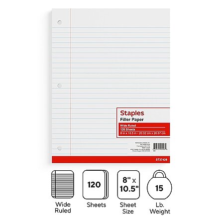 120-Sheet 8" x 10.5" (Wide or College Ruled) Filler Paper $0.85, 70-Sheet TRU RED 8" x 10.5" 1-Subject Notebook (Wide or College Ruled) $0.35 & More at Staples w/ Free Store Pickup