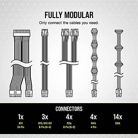 Model: CORSAIR RM Series (2021), RM750, 750 Watt, 80 Plus Gold Certified, Fully Modular Power Supply