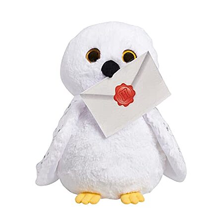 Hedwig plush owl comes with a Hogwarts-stamped envelope, so kids can pretend to receive or send a piece of mail via owl post. The envelope attaches to Hedwig's beak or feet.