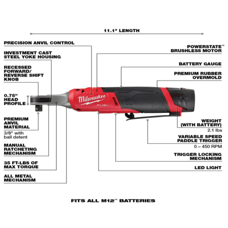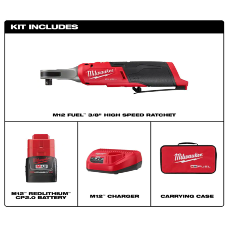 M12 FUEL 12-Volt Lithium-Ion Brushless Cordless High Speed 3/8 in. Ratchet Kit with One Battery, Charger and Bag $139