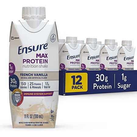 12-Count 11-Oz Ensure Max Protein Nutrition Shake: Milk Chocolate or French Vanilla 2 for $39.95, Cafe Mocha 2 for $45.05 w/ S&S + Free Shipping