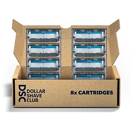 Model: Dollar Shave Club | 6-Blade Club Razor Refill Cartridges, 8 Count | Precision Cut Stainless Steel Blades with a Built-in Trimmer Blade On The Back, Designed For An Extra Close Shave, Silver/Blue