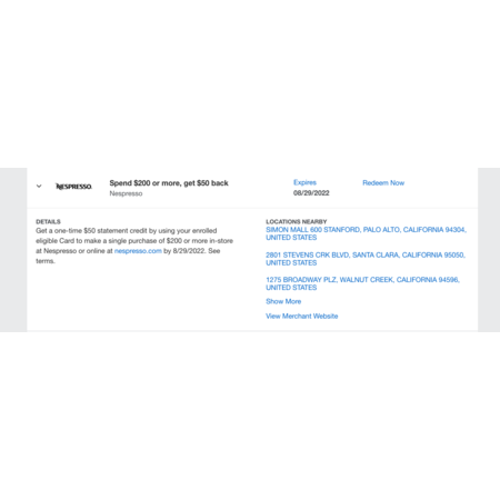 Some Amex cards are offering Nespresso Spend $200 or more, get $50 back deal.