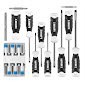 Set includes screwdrivers (3) Phillips: PH 2x4", PH 2x6" & PH 1x 3"; (3) slotted: 3/16" x 4", ¼" x 4" & 5/16" x 6"; (2) star: T 15x3" & T 20x3"; (6) precision screwdrivers: (2) Phillips #00 x 1-3/8" & #0 x 1-3/8", (4) slotted: 1/8" x 1-3/8", 3/32" x 1-3/8", 1/16" x 1-3/8" & 5/32 x 1-3/8"; 6-in-1 screwdriver Phillips (1) PH1 & (1) PH2; (2) slotted: 3/16" & ¼"; (2) hex: ¼" & 5/16". Set also includes 12" Zipper Pouch.