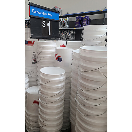 I was at Walmart today and saw a pallet full of these 5 gallon buckets under a $1 sign. The website says they are $4.98, but they did ring up at $1 each. Brickseek and the Walmart website aren't reporting inventory, so YMMV.