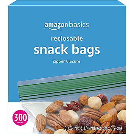 Amazon Basics Snack Storage Bags, 300 Count (Previously Solimo) - $6.74 or $6.40 /w S&S - Amazon