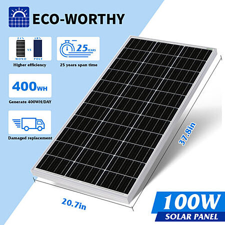 ECO-WORTHY Monocrystalline Solar Panel 12V Home RV Marine Van: 100W $68.83, 200W $158.37, & More + Free Shipping