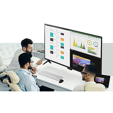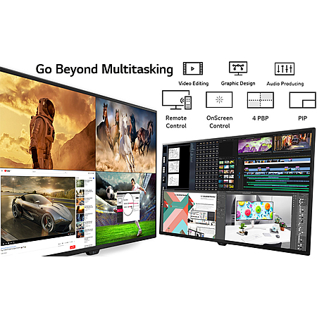 This has advantages over a 43" TV are the anti-glare, matte coating, built-in USB hub, USB-C input and Power delivery, and PIP support. The colors and brightness are decent, and the IPS panel allows you to sit close without off-axis degradation.