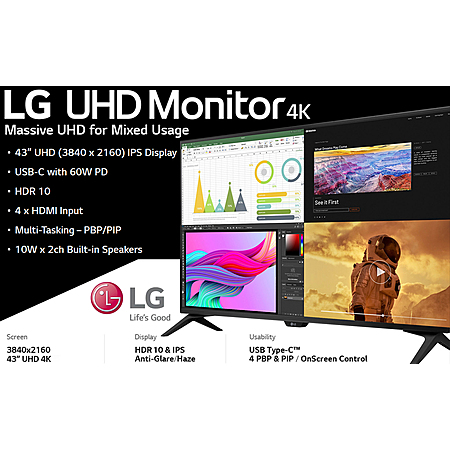 43" LG 43UN700T-B 4K UHD 3840x2160 IPS USB-C HDR 10 Monitor
