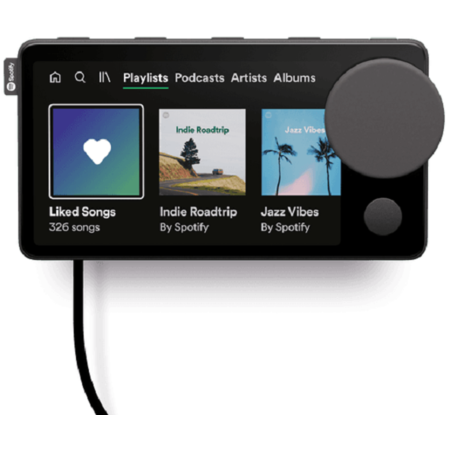 • Use voice control for easy access. Spotify's voice search lets you quickly play specific music or podcasts, and can even help you find something new. Just say "Hey Spotify," then ask for a song, album, artist, playlist, station, or podcast. With four microphones along the top, Car Thing can understand what you're asking to play, even with the music turned up or your windows down.