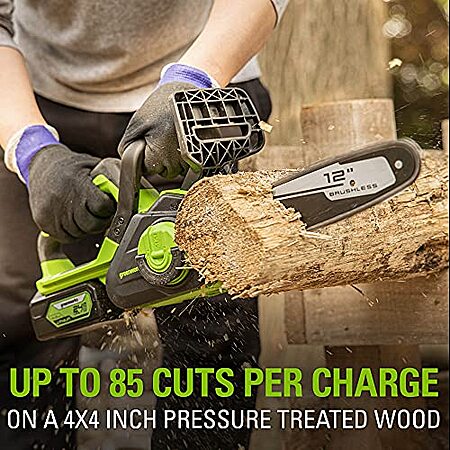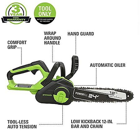 Model: Greenworks 24-volt 12-in Brushless Battery Chainsaw (Battery and Charger Not Included) | CS24L00