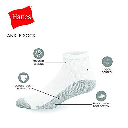 Hanes Men's FreshIQ Odor Protection With Cushioned Foot Bottom Ankle Socks, 12-Pack - $8.45 - Amazon