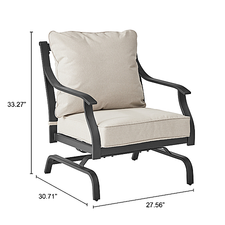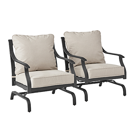 The Newport 2-pack Deep Seating Outdoor Stationary Rocking Chairs are the addition that will make your outdoor patio the place to kick back and relax. Comfy cushions are made with fade-resistant and stain-repellent fabric so you can have your drink with you and not worry about possible party fouls. The set is designed to last against the elements with study steel frames, fade-resistant fabric, and a powder coating for rust resistance. With the Newport 2-Piece Deep Seating Outdoor Stationary Rocking Chairs, you can enjoy your backyard from the comfort of a rocker.