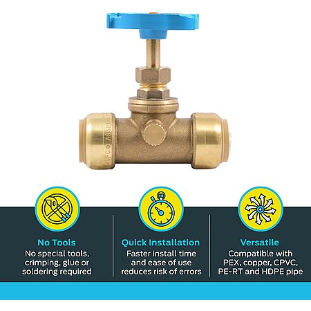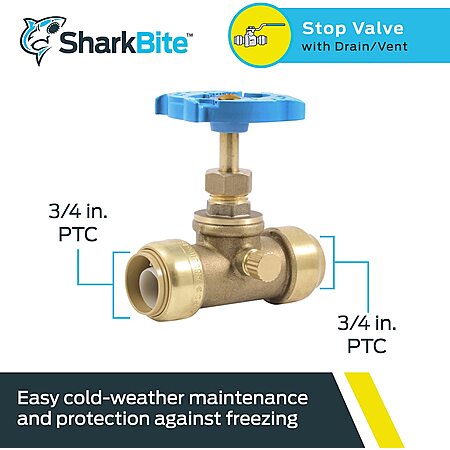 SharkBite 3/4" Push-to-Connect Brass Stop Valve with Drain Vent