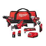 Milwaukee M12 12V Lithium-Ion Cordless Combo Kit (5-Tool) with Two 1.5 Ah Batteries, Charger and Tool Bag $199