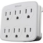 Woods 41196 Wall Adapter with 6 Grounded Outlets, White $3.33