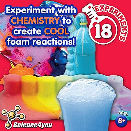- 18 EXPERIMENTS – Use chemistry to create impressive foam explosions, make a foam color run, prepare foams with different textures, and much more!
