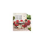 Arm Chair (x4): 28.15" X 23.5" x 35.43" Swivel Chair (x2): 27.36" X 23.5" x 35.43" Dining Table: 66.02" X 40.04" X 27.95" Arm Chair(N.W): 7.12kg/15.7lbs Swivel Chair(N.W): 11.64kg/25.66lbs Dining Table(N.W): 28.47kg/62.77lbs Clour: Black,Red Materials: Steel,Tempered glass,Polyester Weather-Resistant: Our metal table and chair furniture set made of sturdy metal steel frame with powder coating, rust resistant, easy to clean, no special care Outdoor & Indoor Occasion: Our dining sets is not only suitable for outdoor garden lawn patio pool coffee time but also suitable for indoor kitchen living room dinner time Comfortable Design: Smooth 360 degree swivel chair with high density spun polyester cushion, stylish wood like table design will brings aesthetic feeling to your patio, lawn, garden 2 years warranty Do you have missing or damaged parts? Before attempting to return to the store please call us at 1-877-980-6928 or email us at