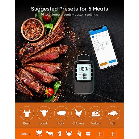 Govee US via Amazon [amazon.com] has 230ft Range Wireless Bluetooth Meat Thermometer with 4 Probes, Timer Mode, and Alert Notifications for $32.99 - 40% = $19.79 when you clip the 40% extra savings coupon on the product page. Shipping is free.