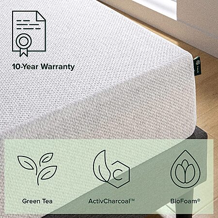 INSPIRED BY NATURE - Wholesome and natural ingredients, like green tea and moisture-absorbing charcoal work wonders in a mattress, and we've designed this one to control odors, maintain freshness, and envelop your shape so you awake restored and refreshed.PRESSURE-RELIEVING FOAMS - Layers of conforming green tea memory foam, soft Z:Comfort foam and high-density Z:Base foam hug your shape to soothe you to sleep