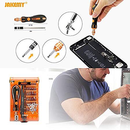 Model: Screwdriver Set 43 in 1 Precision Screwdriver Kit JAKEMY Magnetic Replaceable Bits Repair Tool Kit Opening Tool and Tweezer for iphone Cellphone PC Electronics