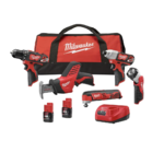 Milwaukee M12 12V Lithium-Ion Cordless Combo Kit (5-Tool) with Two 1.5 Ah Batteries, Charger and Tool Bag 2499-25 - $199