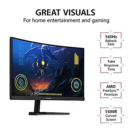 ViewSonic OMNI VX2468-PC-MHD 24 Inch Curved 1080p 1ms 165Hz Gaming Monitor with FreeSync Premium, Eye Care, HDMI and Display Port $123.49 + Free Shipping
