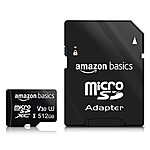 Amazon Basics microSDXC Memory Card with Full Size Adapter, A2, U3, Read Speed up to 100 MB/s, 512 GB - $50.50 + F/S - Amazon