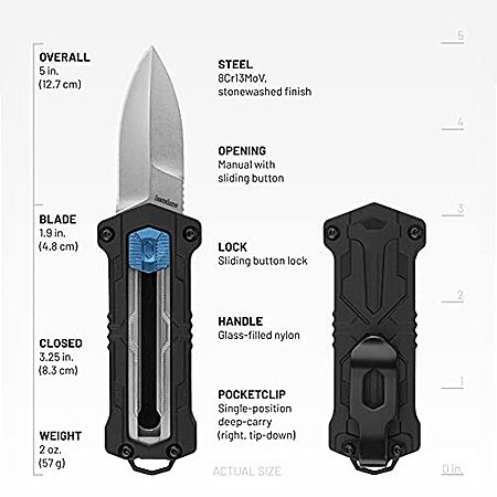 About this item:- The Kershaw Kapsule is a compact and portable 1.9-inch blade made with 8Cr13MoV Steel, boasting a single-edge.