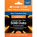 New Boost Mobile Customers: 3-Month Unlimited Talk/Text + 5GB Data Plan SIM Card Kit